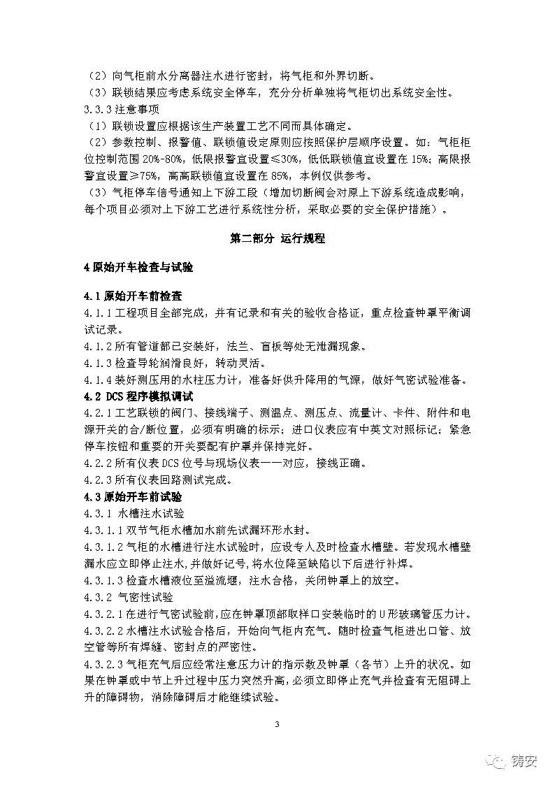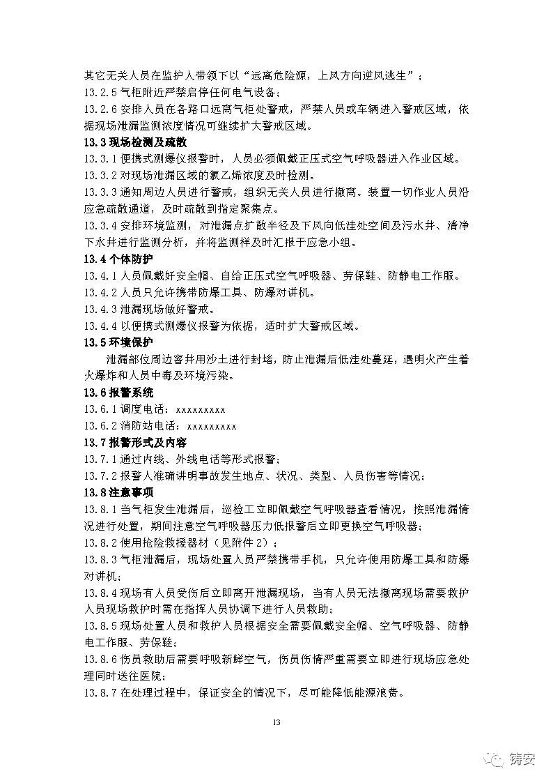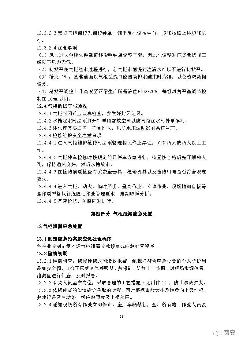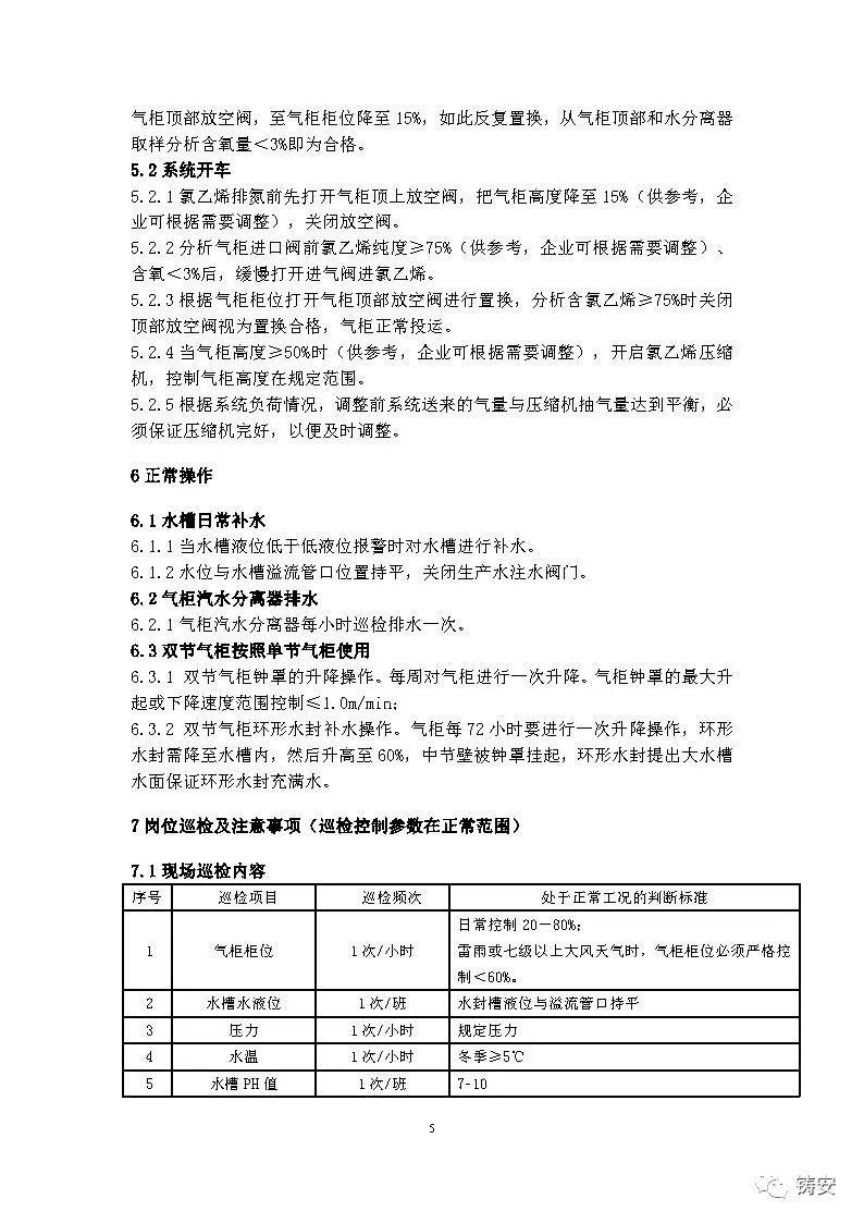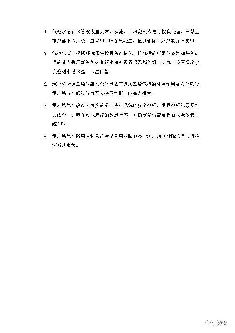 为深刻汲取“11.28”和“4.24”氯乙烯气柜事故教训,进一步完善氯乙烯气柜安全管理,根据应急管理部危化司要求,协会组织编制了《氯乙烯气柜安全运行规程》(见附件1),中国天辰工程有限公司编制了《氯乙烯气柜安全保护措施改进方案》(见附件2),并经过行业专家会议研讨完善,形成发布稿。现下发给各企业,请参照做好相关工作。