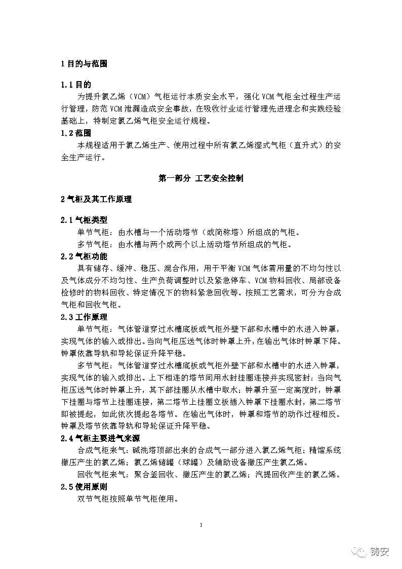 《氯乙烯气柜安全运行规程》正在按照《中国氯碱工业协会团体标准管理办法》的相关程序开展工作,尽快以团体标准形式向全行业正式发布。