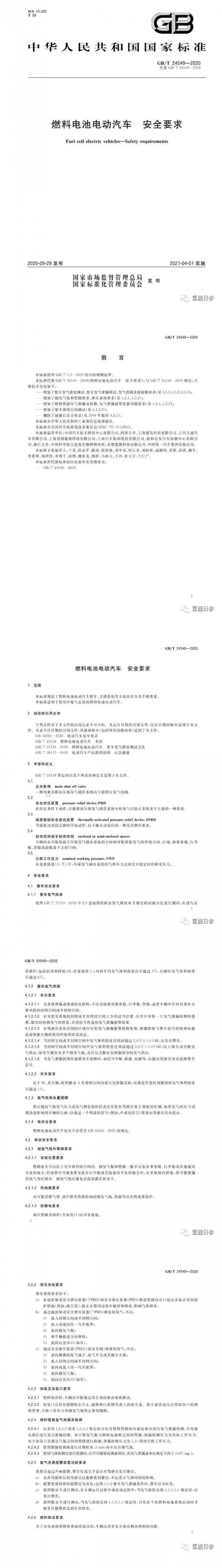 近日,《燃料电池电动汽车 安全要求》(GB/T 24549-2020)国标正式发布。该标准用来代替《燃料电池电动汽车 安全要求》(GB/T 24549-2009)旧国标。