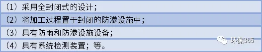 生产活动中涉及的过滤,挤压,浇铸,干燥,消音,加热,冷却,自动填充,加药和称重等活动属于半开放处理系统,其在填充或排空时需要打开。而喷涂和喷射活动一般在开放性区域进行处理,开放性区域的活动还包括直接位于未铺装地面上的物料运输、临时存储和洗车等。这种系统需要通过具体的措施来防止物质扩散到环境中。采用以下设计和建设可以降低污染土壤的风险,包括但不限于: