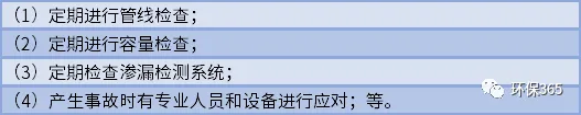 采用以下运行管理措施,可以降低地下储罐污染土壤的风险,包括但不限于: