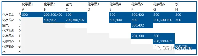 因此,化学品反应矩阵图编制的对象,不仅包括化学品本身,其他的相关因素也应该考虑进去。例如:
