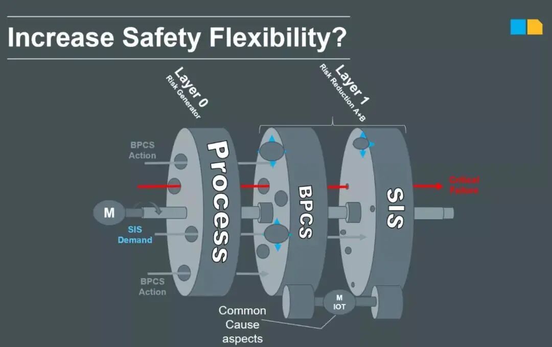 希马(上海)工业自动化有限公司总经理Peter Sieber先生在“2020 ARC工业论坛”上做了《降低风险 优化安全支出》的报告,我们根据此次演讲内容,来谈谈工业物联网时代的功能安全策略。 功能安全的保护层设计 现代大工业,尤其是过程行业,从诞生之日起就面临着各种各样的风险和隐患。为了减少事故的发生频率和降低事故的灾难性后果,现代工业设施在设计之初就会有大量安全方面的考虑,比如将重要设备和易燃易爆区域隔离的本质安全方法,就非常受欢迎。 这就如同2020年人们最熟悉的保持社交距离或者居家隔离,它非常有效,但是当人们开始必不可少的生产生活活动,彼此之间的交互变得不可避免的时候,这种逻辑上最为简单的方法就必须要进行改进或者采用其他的方法进行补充。在抗击呼吸道传染病的时候,人们佩戴口罩使用洗手液,而在工业设施当中,功能安全技术和系统也就起到了相同的作用。 按照国际电工理事会(IEC)的定义,过程风险是危险事件发生频率和后果的乘积,而风险分析和管理的目标,就是要通过功能安全技术中不同的保护层将风险降低到可以被接受的水平。可以说,功能安全为过程管理带来了全新的理念,现代过程工业才能得以按照现有的方式运行为普通大众所接受。 那么,过程控制中如何实现功能安全呢?Peter Sieber提出了圆盘模型,将受控设备、基本过程控制系统和安全仪表系统想象成三个圆盘。下面就先来看一段Peter关于圆盘模型的视频讲解。