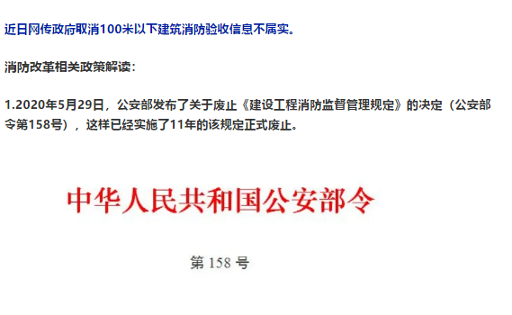 2.消防验收由公安部负责改为住建部负责,并非不再进行消防验收。
