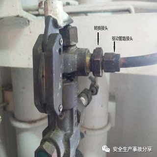 14时43分至15时6分,李洪振两次与南通市海鸥救生防护用品有限公司陈宇峰微信通话联系,咨询处置措施。陈宇峰告诉李洪振,要用扳手将增压阀上两个驱动管(与集流管相通)拆掉,将进入集流管的二氧化碳排出。李洪振在操作过程中,因慌乱误抓了增压阀上的压柄,意外将增压阀(见图3、图4)打开,导致集流管内的二氧化碳进入驱动管路,瞬间将84个二氧化碳钢瓶的瓶头阀及通往机舱的总阀开启(另外16个二氧化碳钢瓶没有打开),大量二氧化碳气体排放至机舱内。