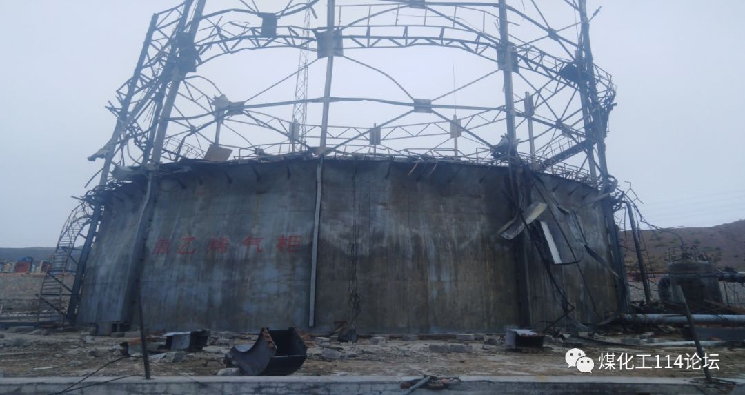 (1)聚氯乙烯车间。5000m3的氯乙烯气柜严重损坏;100 m3的糊树脂单体储槽A筒体裂缝且过火严重;触媒库房整体破损;部分转化总管及支管断裂或落地;水洗碱洗厂房、精馏一楼二楼、聚合厂房、PVC库房等墙体彩钢板大部分破损;所有门窗破损。