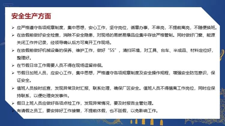 | 1 | 节日值班 | 有无节日值班表并公示 |
