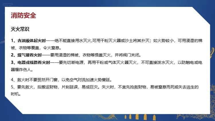 | 39 | 消防器材 | 灭火器应置于设定位置,无障碍物,摆放稳固 |