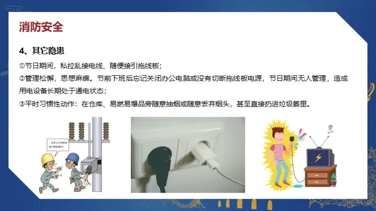 17 | 越冬维护人员的办公室、宿舍及食堂、厕所用电安全,做到人走电关。 |