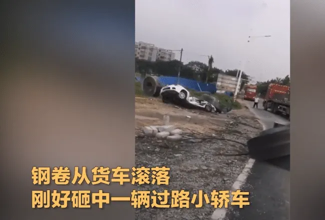 通过网上的视频看到,货车司机踉踉跄跄的从车上下来,应该被吓得不轻。而后方一辆白色的轿车被砸成了铁饼,周围散落着一些钢卷,其中一个钢卷还砸在小轿车的车尾位置。随后,消防和警察赶到现场救援处置。生命太脆弱,谁也不知道下一秒会发生什么。车祸丧生的女司机做梦都没想到,自己会通过这样的方式被结束生命,实在太残忍了。钢卷从车上滚落导致严重事故并非只发生这一起。然而很多货主、司机都心存侥幸,图省事,违规运输,认为不可能发生事故。