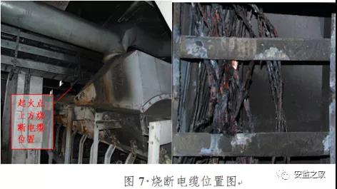 2)燃料消防监测系统设计存在盲区。原始设计中(附件6),火灾感温电缆采用吊装形式(感温电缆用钢丝拉线吊装在皮带上方1.0~1.5米处)敷设,考虑到保持一定松紧度,电缆长度保留一定的富余量,C9A皮带首尾部中心桶距离为206米,实际电缆覆盖距离仅170米,存在敷设盲区。暴露出原始设计不规范,验收审核部门把关不严。皮带上方防护罩、除尘器、导料槽、除铁器等设备处没有感温电缆,出现约30米盲区。火灾初期发生在导料槽,距离最近的感温电缆约18米,致使报警感温电缆自动报警时间延误26分钟。3)燃料消防水喷淋系统未发挥作用。C9A消防水喷淋系统包括消防水幕喷淋系统和预作用水喷淋系统,均未联动喷淋。水幕喷淋系统和预作用水喷淋通过报警信号(温度68度)联动电磁阀控制管内水压,启动水喷淋,由于自动报警系统报警时间延误,导致联动电磁阀控制电缆在报警前已烧断(图7、附件7),造成联动电磁阀未动,水幕喷淋系统未喷淋,预作用水喷淋系统在闭式喷头玻璃泡破裂(爆裂动作温度68度)的情况下也未喷淋。华东电力设计院消防系统设计说明书中明确“预作用阀控制管路中设计存在压缩空气”,经与设计人员核实,属说明书文字编写错误。