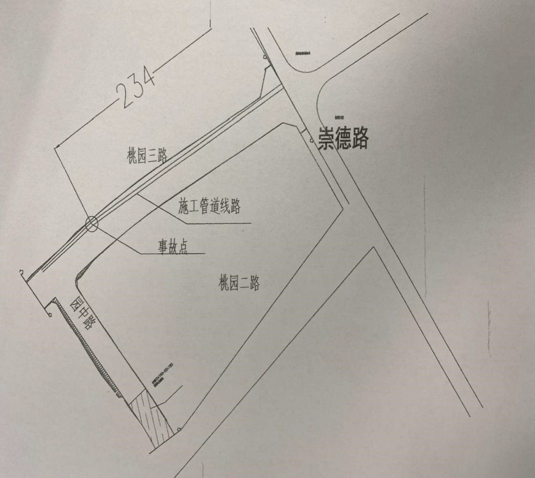 1、项目名称及基本情况:横沥桃园三路、园中路道路工 程。该工程于2019年10月23日在东莞市公共资源交易中心进行招标,于2019年11月5日发出中标通知书,由江西福乐园林有限公司中标,项目中标价是人民币8773196.23元;工 程全长约0.52KM,道路等级为城市次干道,桃园三路设计速度 40KM、园中路设计为30KM,桃园三路路基宽度30M,园中路基 宽度24M,采用双向4车道,道路路面采用水泥混凝土路面, 最大排水管直径DN800,事故发生的地方设计深度是2.2米, 实际开挖深度是2.9米。