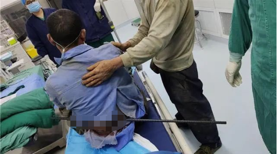 3月20日上午,贵阳市白云区高海路附近某建筑工地发生一起事故:1名工人施工中不慎从高处跌落,颈部被下方竖立的一根钢筋插穿。现场一根下端固定在混凝土层中,外露部分长2米、直径约1.5厘米的钢筋从工人的后颈部刺入,口腔穿出。3月17日,四川内江第一人民医院发生紧张一幕,一名建筑工人腰腹被一根直径16毫米、长1.2米的钢筋贯穿,情况危急。