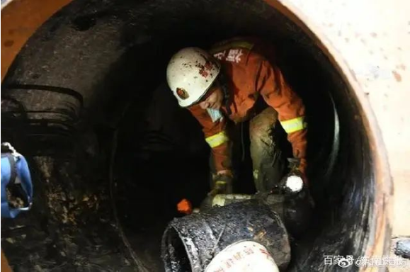 最先赶到现场的长乐滨海新区消防救援力量经初步侦查发现,两名工人被困在直径1.2米、长度240米尚未建设完工的污水管道内,具体位置不详。消防救援人员首先利用大型送风设备向管道内不间断输送新鲜空气,同时由一名身材相对瘦小的消防员佩戴好个人防护装备后,进入管道搜索被困人员。