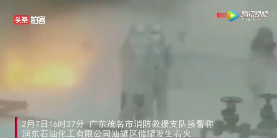 广东茂名润东石油化工有限公司油罐区储罐发生着火