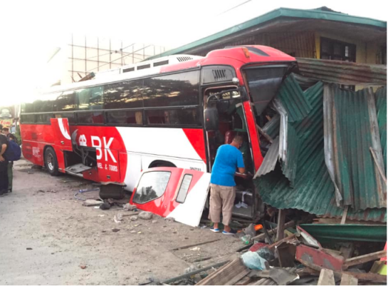4月25日下午,一辆载有从马尼拉出发的搭载换班下船海员归乡的巴士,在途经奎松省时,撞上一栋建筑物,并冲入两栋房屋中。