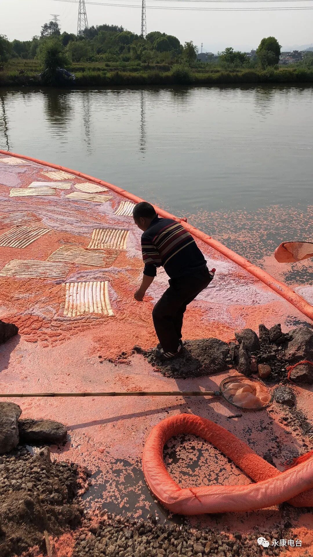 中翼先锋救援队迅速组织20余名人员,带上油污吸附材料奔赴现场进行处置。农业局综合执法、环保、渔政等部门到现场指导工作,并对鱼塘水质污染情况进行采样监测,救援队人员采用先进的物理吸附材料将鱼塘水面溢油及时吸附清除,保护周边水域环境及鱼类安全,经过7个多小时连续作业,鱼塘清污工作于下午17点结束。