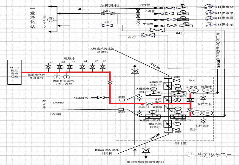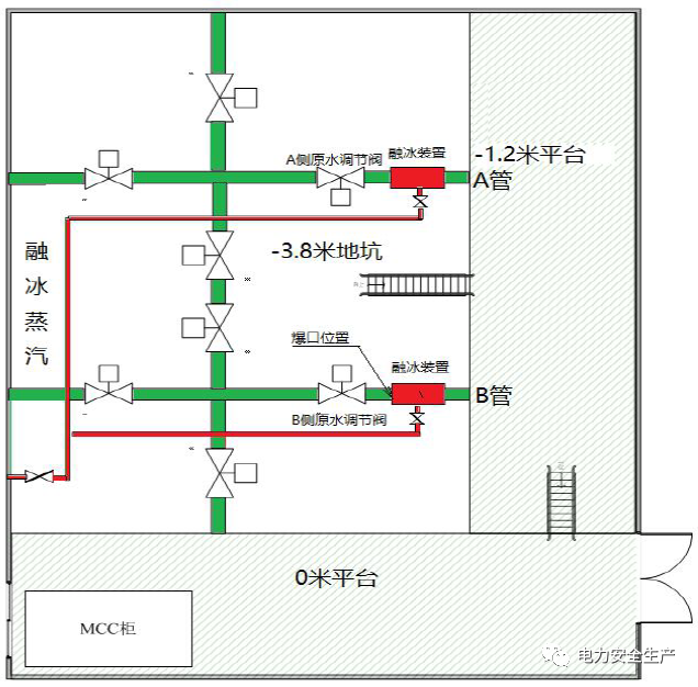 3.自1月2日至事故发生时,河心乙母管至有限公司B原水管线#4分段电动门全开、调节阀开度约30%左右、至配水井电动门全开,B原水管线融冰蒸汽投入运行。