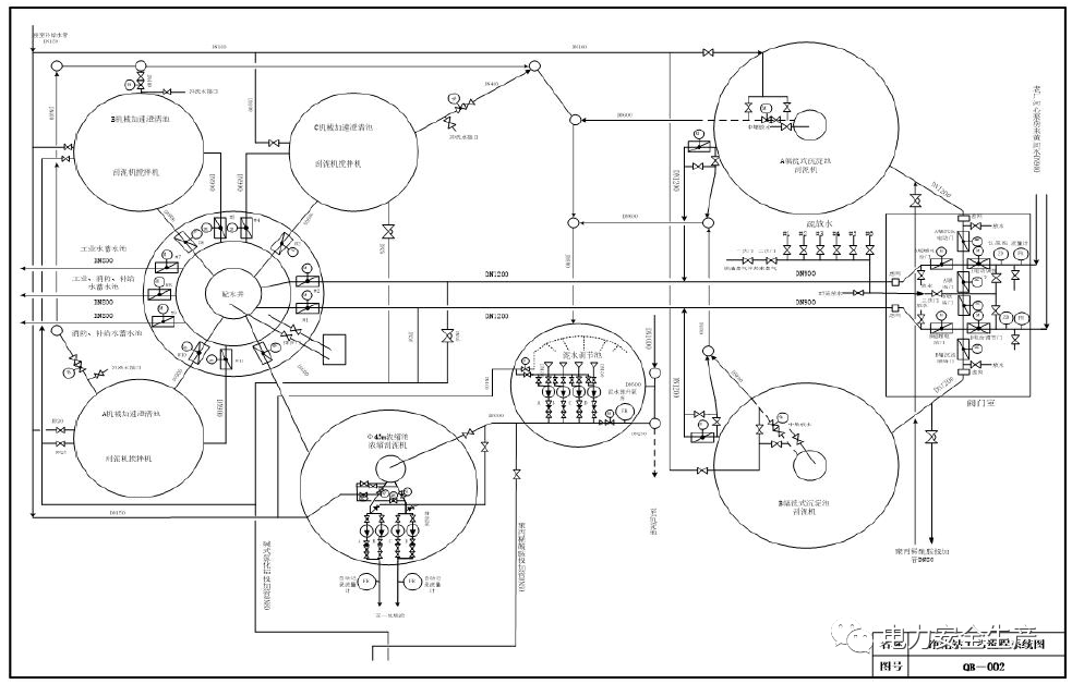 1.石嘴山电厂净化站系统概况石嘴山电厂净化站2002 年投入运行,净化站设置两个(A、B)百米幅流沉淀池,一个中央配水井,三个(A、B、C)机械加速澄清池,和一个45 米浓缩池。两条原水管线在石嘴山电厂净化站阀门室内设有联络门,经分配后进入百米幅流沉淀池或中央配水井。夏季原水通过阀门室先进入百米幅流沉淀池,再进入中央配水井分配至机械加速澄清池;冬季原水通过阀门室直接进入中央配水井分配至机械加速澄清池。