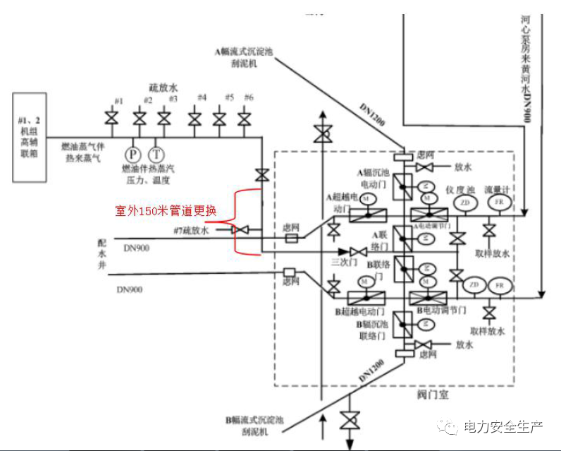 2020年1月2日23时10分,石嘴山电厂净化站A机加池出水量减小,调整B原水管线调节阀无效,就地检查B原水管线调节阀电动头变速箱齿轮磨损,因B原水管线无过流声,投入B原水管线融冰系统(查阅SIS历史数据燃油泵房处蒸汽压力1.0MPa,温度190℃)。