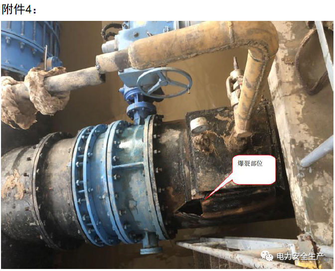 在进行B 原水管线调节阀电动执行机构回装调试工作时,临近的B 原水融冰装置焊缝崩开,汽水混合物大量喷出,造成附近工作人员烫伤。