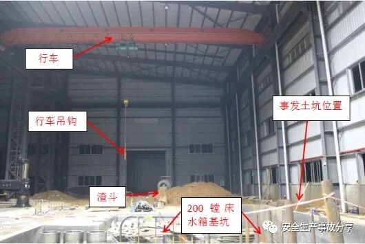 事发地点位于北纬23°8′21″东经113°26′16″,现场可见一标准钢结构厂房,厂房内堆放着大量机械设备。事发地点位于广州市磊蒙机械设备有限公司1号车间200镗床水箱基坑,该位置存在渗水的现象。事发现场可见开挖的土坑有明显坍塌迹象,事发位置旁有一条电缆沟,刘丛友(死者)工作的位置旁有电缆、铁锹、水泥板、电缆沟碎块等杂物。【证据:《现场勘查笔录》(穗从安监管勘字〔2019〕第A002号)、《现场图片》、陈秋华笔录等】