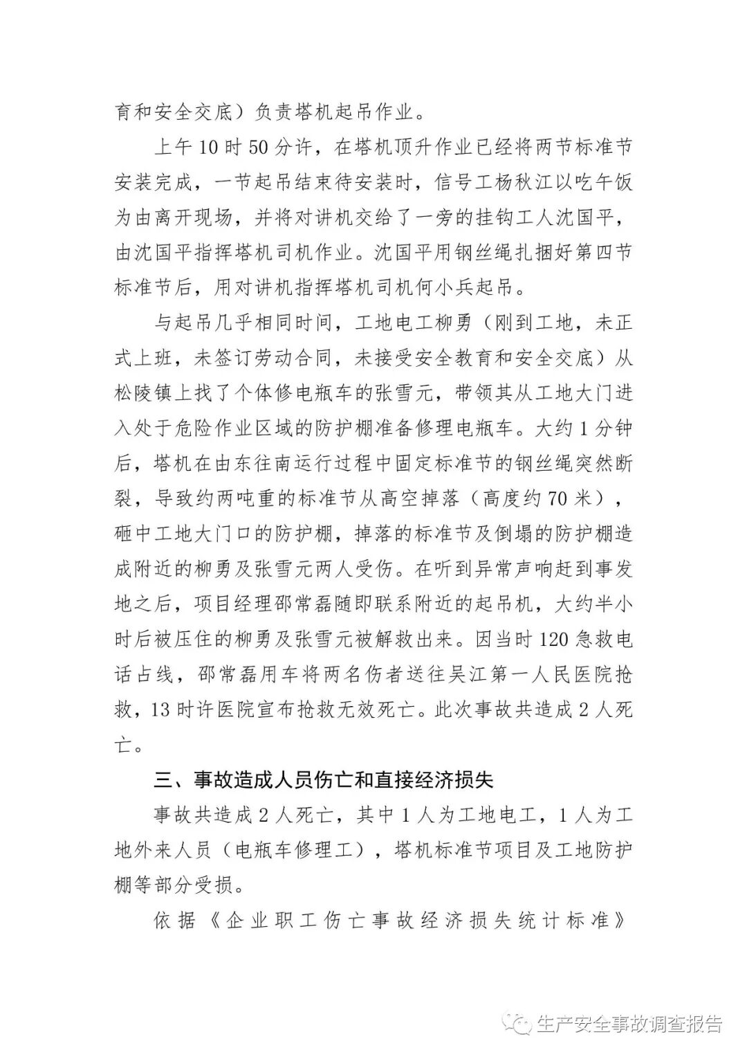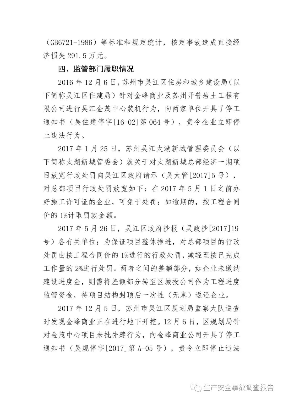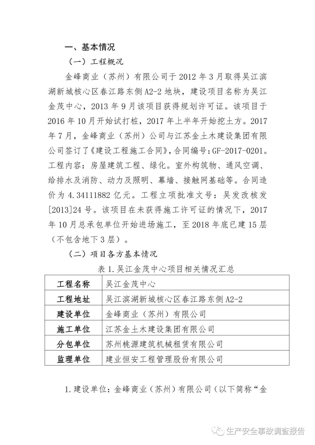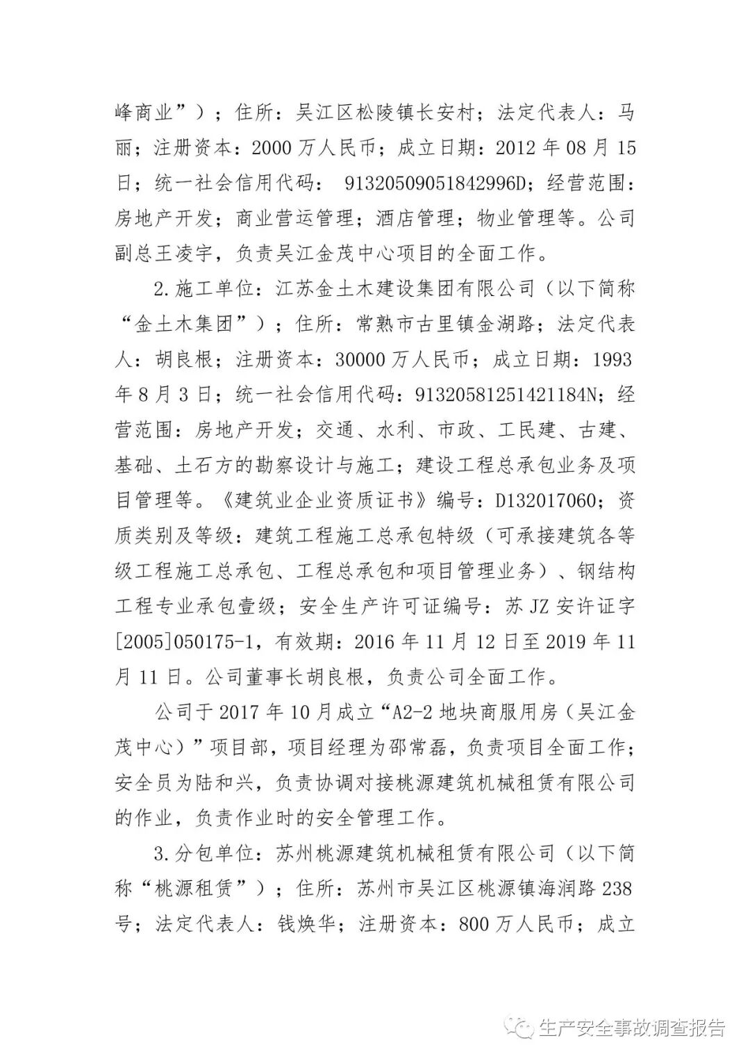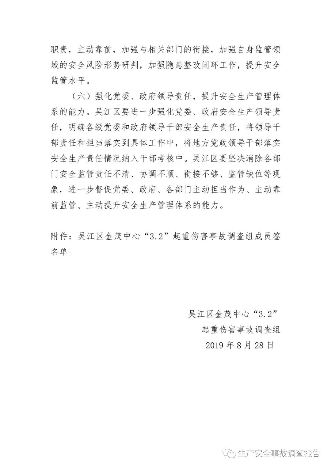 2019年10月15日,苏州市应急管理局官网发布《吴江区太湖新城金茂中心工地“3.2”起重伤害事故调查报告》。报告全文如下
