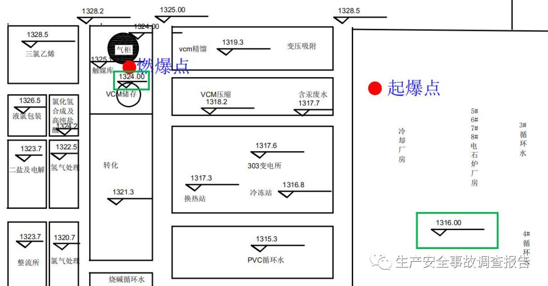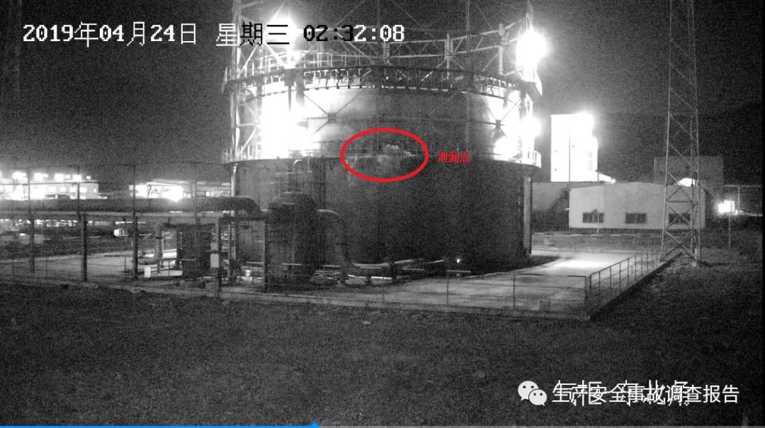 以下3图分别为氯乙烯气柜泄漏、起爆点、燃爆点图片(以北京时间为准):