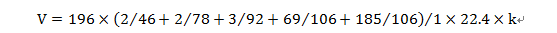 其中k是根据气体平衡状态方程得出的,其他变量不变的情况下,体积与温度呈正比关系,标准状况下为0℃,烘箱里的温度一般恒定在40℃左右,所以在温度下,单位摩尔质量的体积会增大。则可以得出挥发出来的爆炸气体的体积为12611.8L。那么可以得出最后挥发出来的气体浓度占假设空间的体积分数为