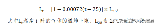 爆炸极限不是一个固定值,它随着各种因素的变化而变化。影响爆炸极限因素主要包括初始温度、初始压力、惰性介质及杂质和容器等。在此次爆炸事故中,舱体内的温度较高,初始温度对于爆炸极限的影响会很大,其他的相关因素这里不作考虑。下面为爆炸下限的与温度之间的理论公式。